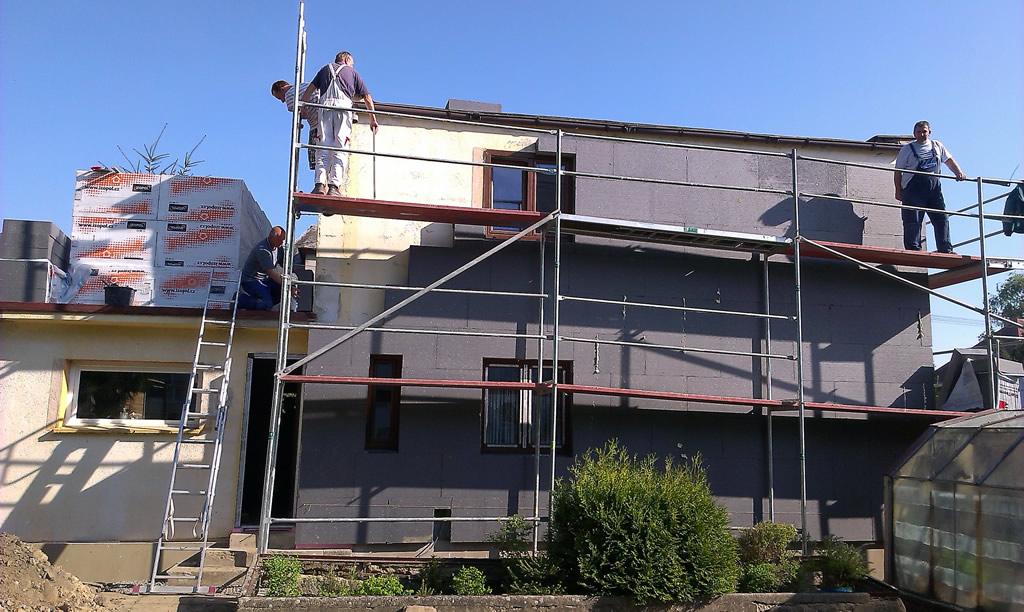 Jedná se o dvoupatrový rodinný dům s garáží starší výstavby. Dům je terasovitého tvaru s plochou střechou zateplenou polystyrenem tl. 250 S Stabil s krytinou z hydroizolační folie 1,5mm. Nová plastová okna a dveře v barvě zlatý dub. Dům je opatřen tepelnou izolací z polystyrenu EPS Grey tl. 160mm s fasádou zatíranou silikonovou s hrubosti zrna 1,5mm a sokl z polystyrenu XPS tl. 150mm s omítkou mozaikovou jemnozrnnou.